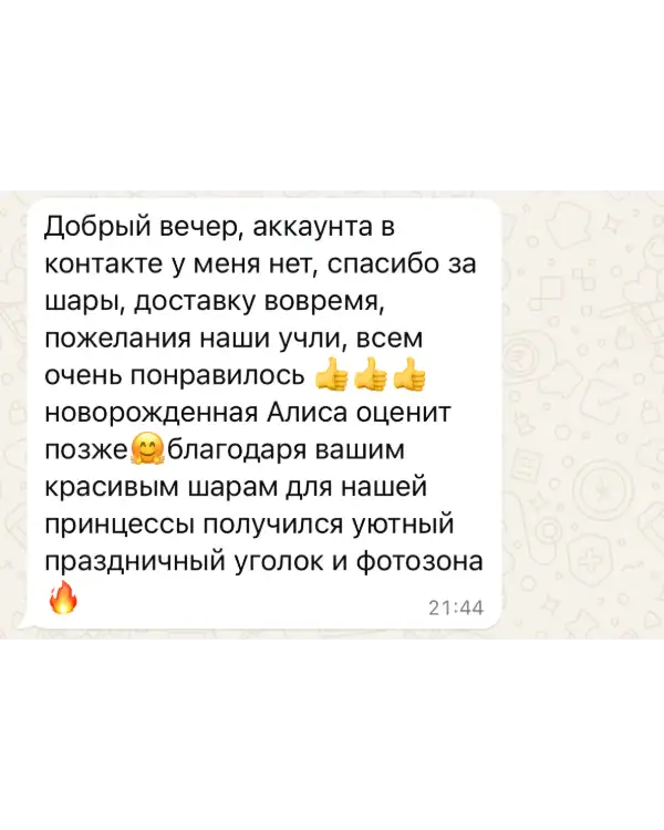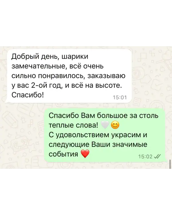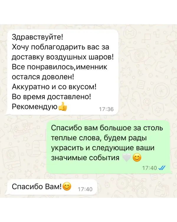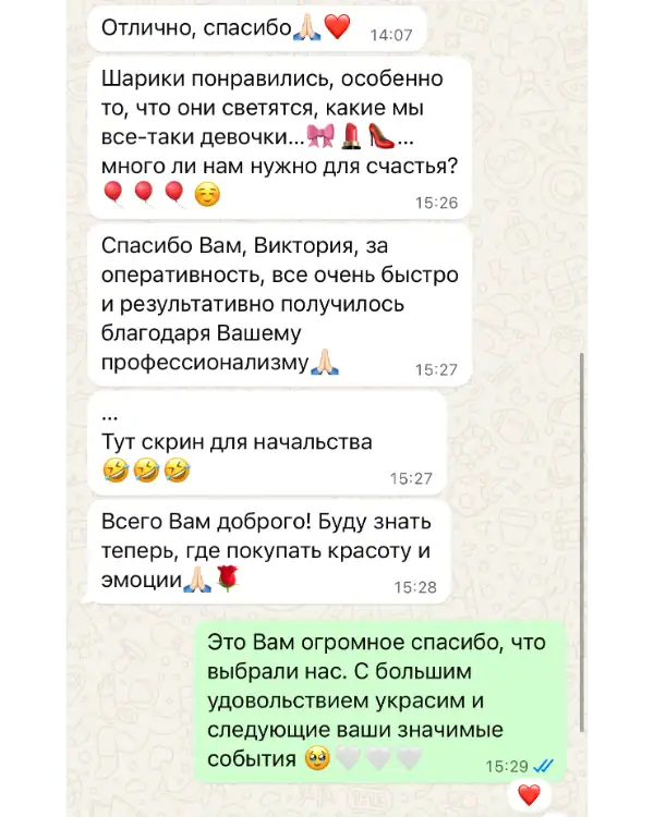 Каждое торжество требует внимания к деталям, и мы понимаем, что в процессе подготовки могут возникать срочные вопросы или неожиданные изменения. Именно поэтому вы можете купить или заказать воздушные шары с полной уверенностью в круглосуточной поддержке. Наша команда всегда на связи — днём и ночью, в будни и выходные — чтобы оперативно проконсультировать, внести корректировки в заказ и предложить оптимальное решение под вашу задачу.